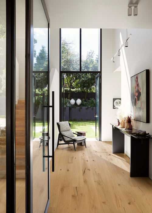 Edles Eichenparkett mit ausgewogener Maserung und matter Oberfläche für ein modernes, natürliches Wohngefühl. Hochwertig, langlebig und ideal für anspruchsvolle Wohnräume.